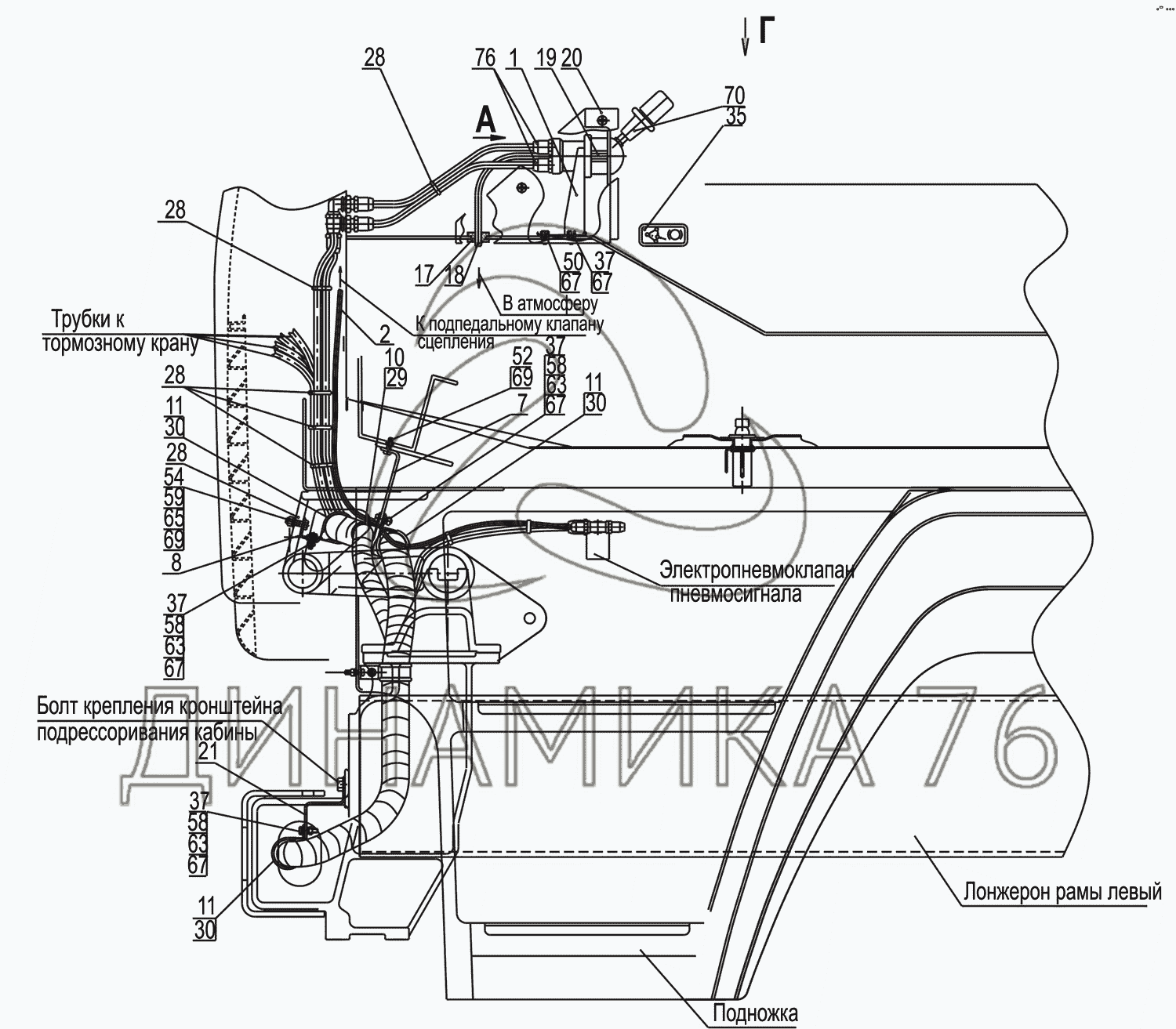 Перечень комплектующих от Привод стояночного тормоза 5340V4-3537006-010 на МАЗ-5550V3 (V5)