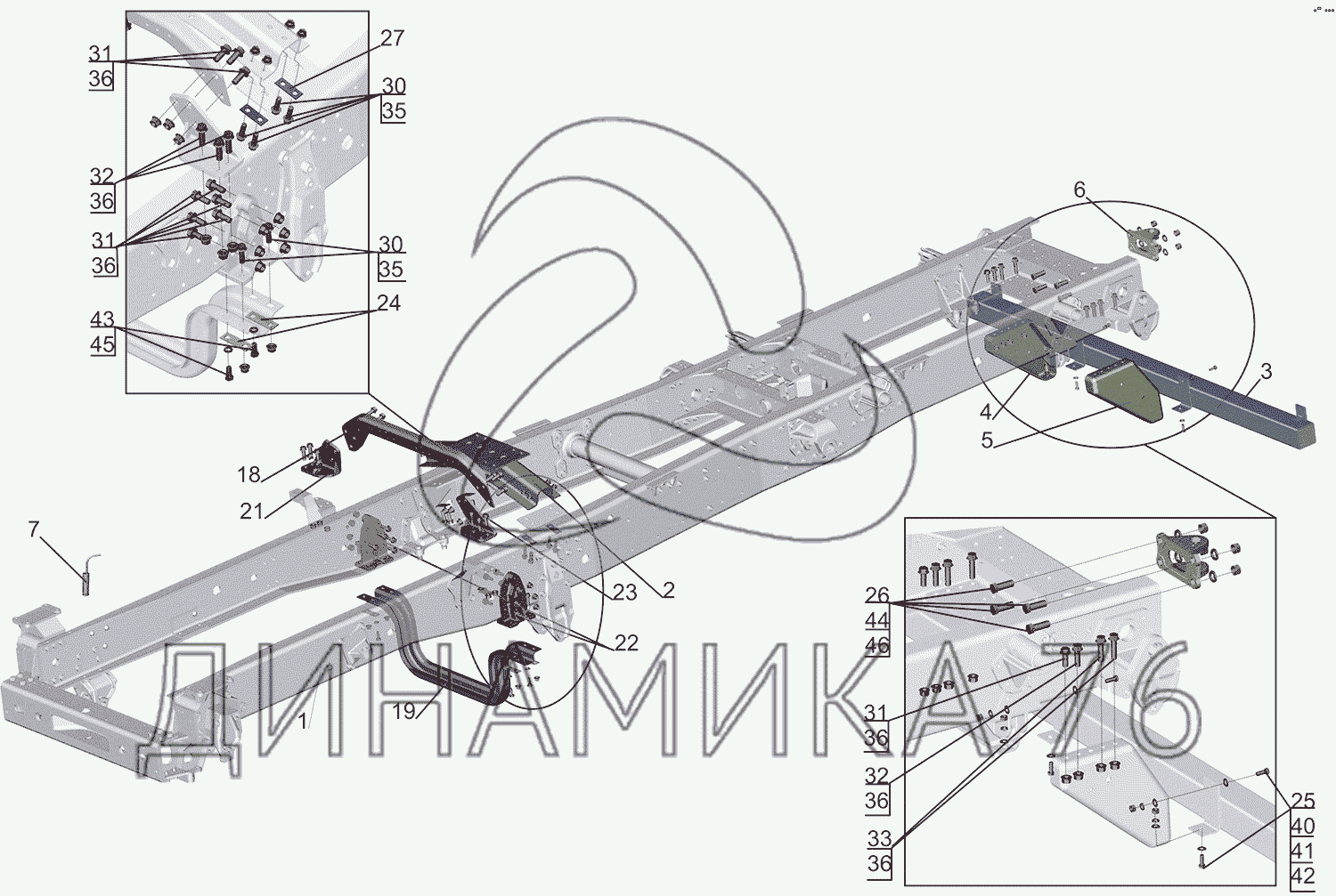Перечень комплектующих от Рама 5550V3-2800010-000 на МАЗ-5550V3 (V5)