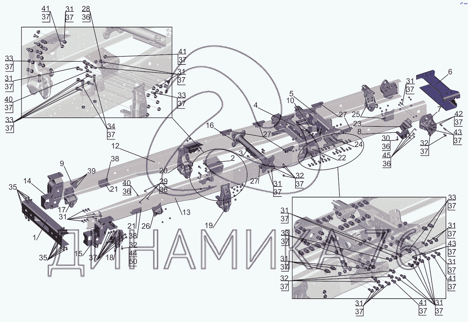 Перечень комплектующих от Рама 5550V3-2801002-000 на МАЗ-5550V3 (V5)