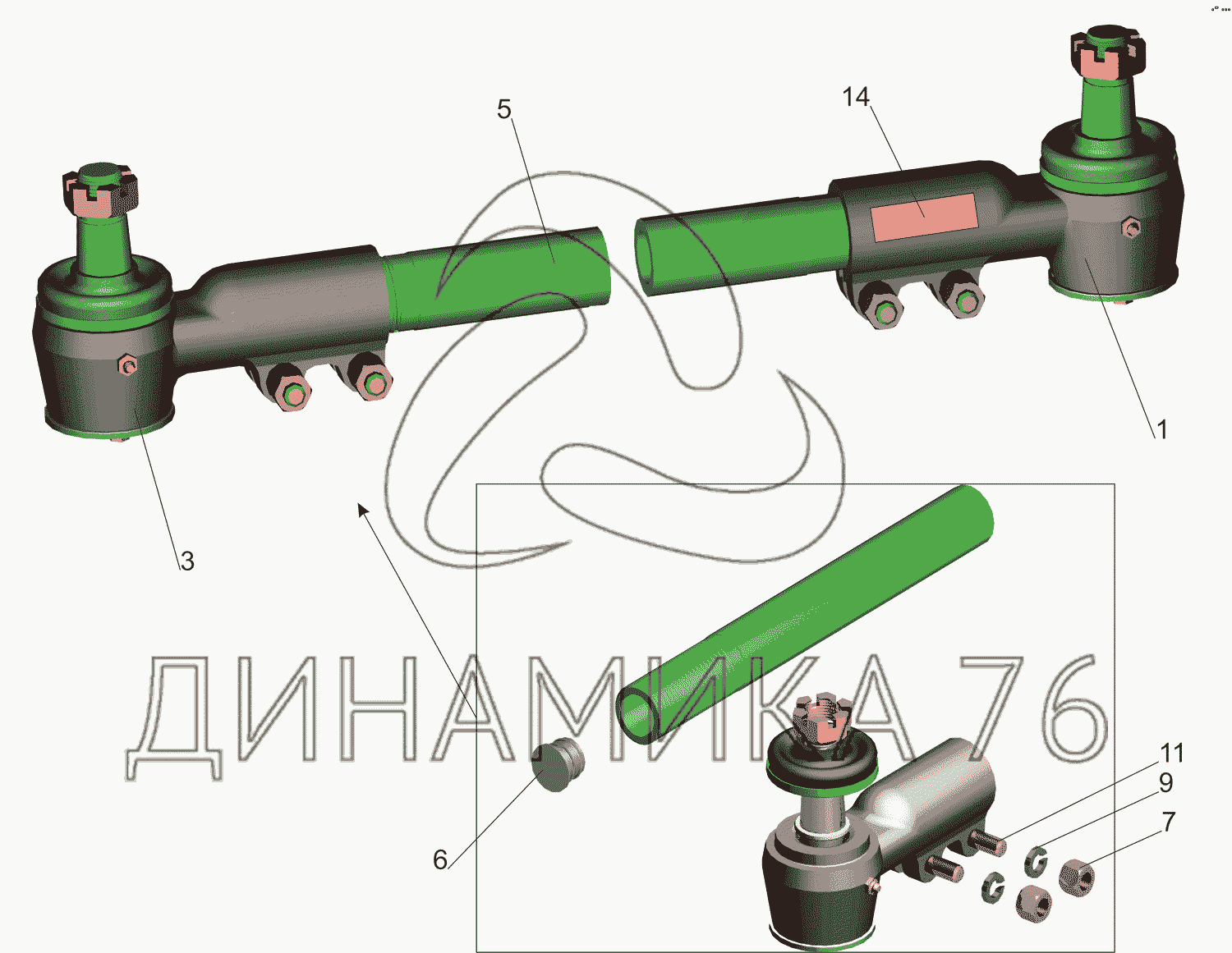 Перечень комплектующих от Тяга поперечная 64221-3003052 на МАЗ-5550V3 (V5)