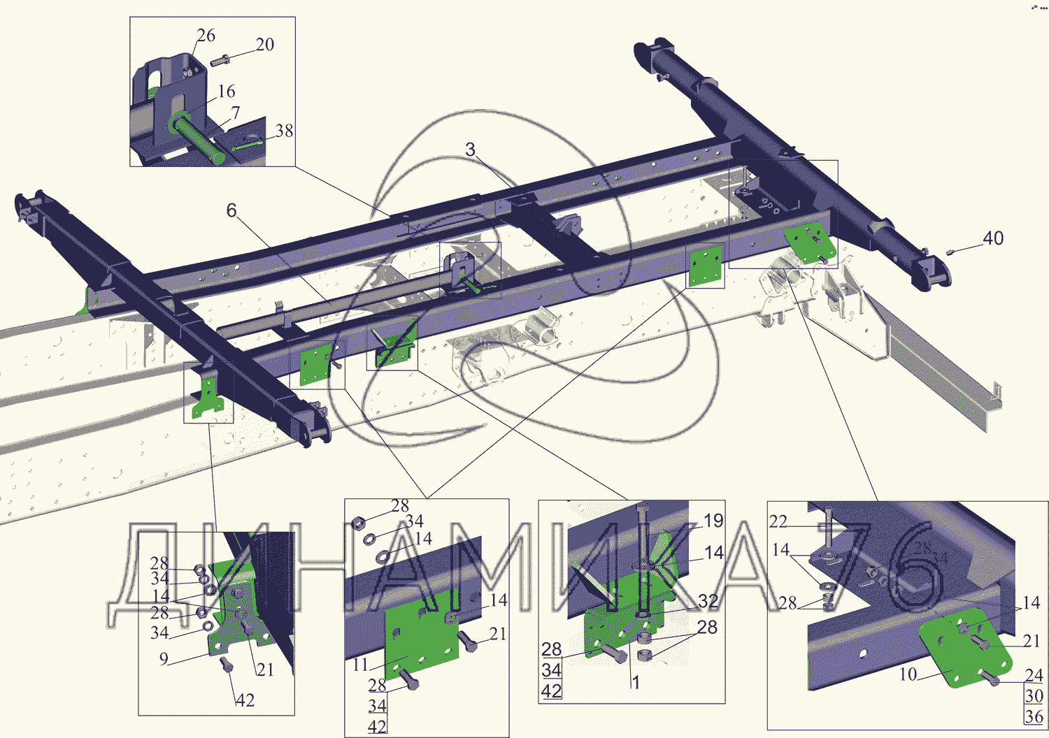 Перечень комплектующих от Установка надрамника 5550B5-8600002 на МАЗ-5550V3 (V5)