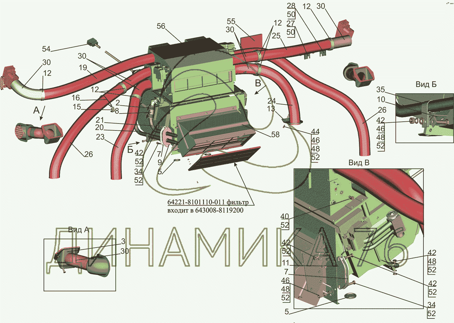Схемы запчастей предназначены для справочных целей! Мы продаем не все запчасти от Установка отопителя 631019-8100001 на МАЗ-5550V3 (V5), представленные в этом списке.