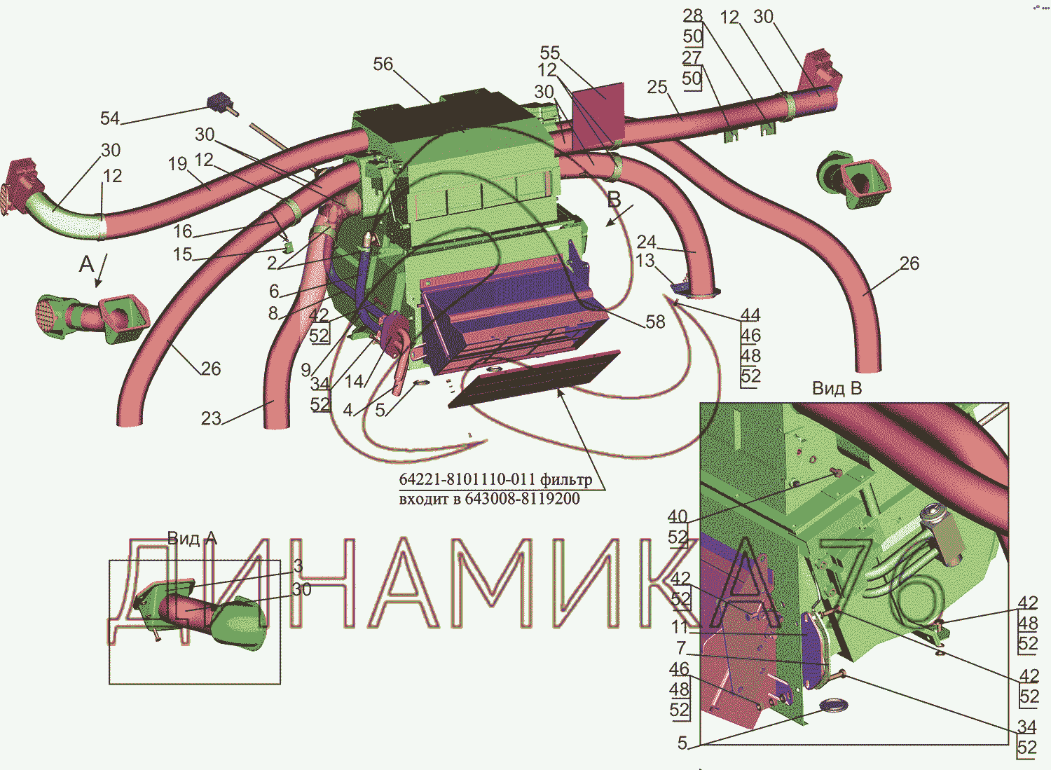 Схемы запчастей предназначены для справочных целей! Мы продаем не все запчасти от Установка отопителя 643008-8100001 на МАЗ-5550V3 (V5), представленные в этом списке.
