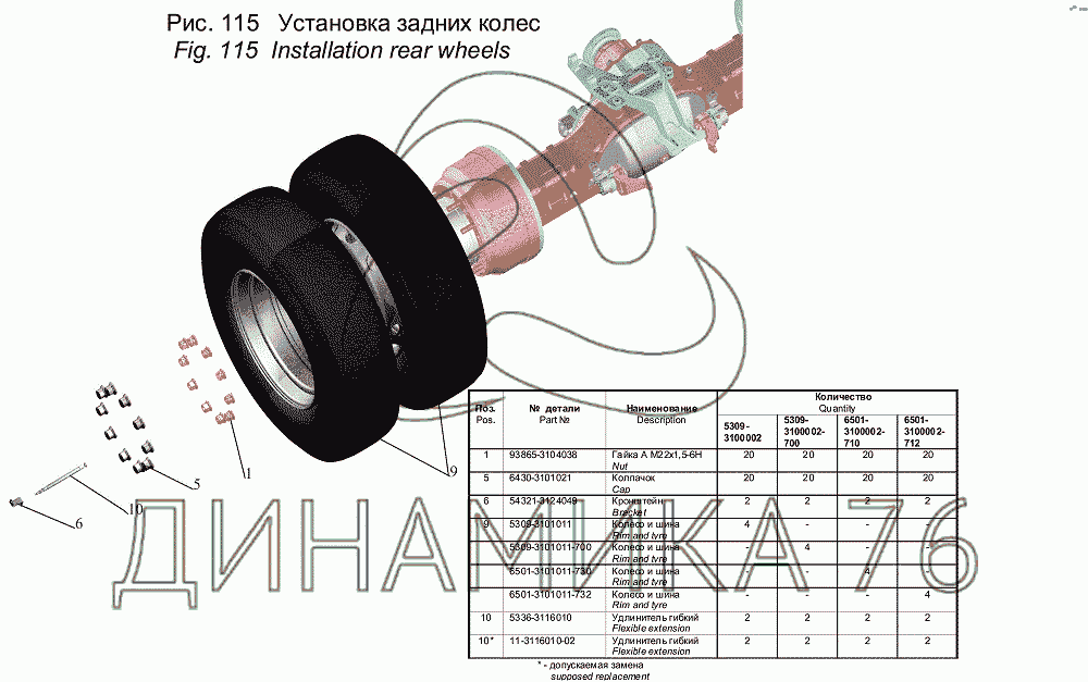 Перечень комплектующих от Установка задних колес на МАЗ-5550V3 (V5)