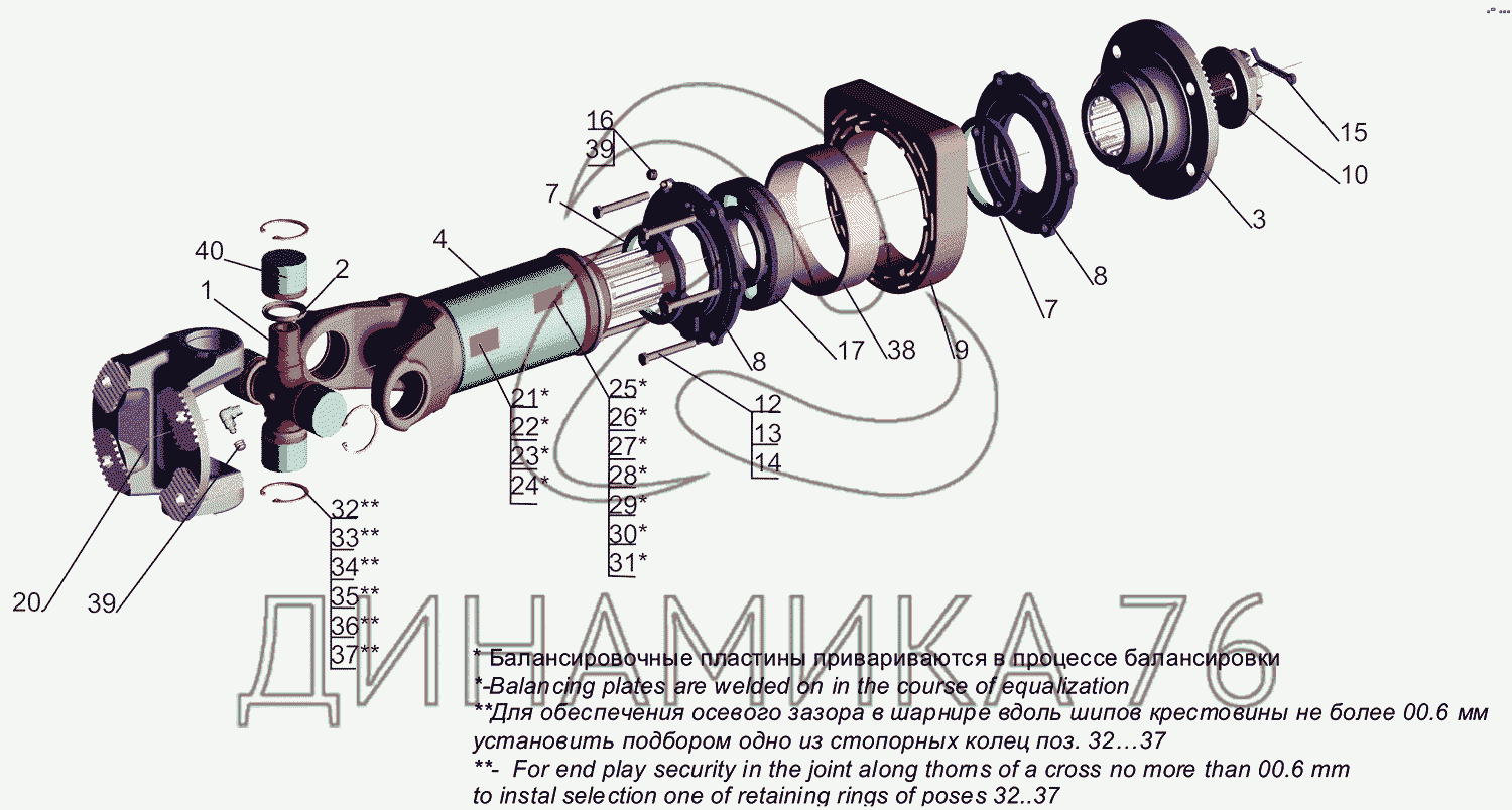 Перечень комплектующих от Вал карданный промежуточный 6312V5-2202010-000 на МАЗ-5550V3 (V5)
