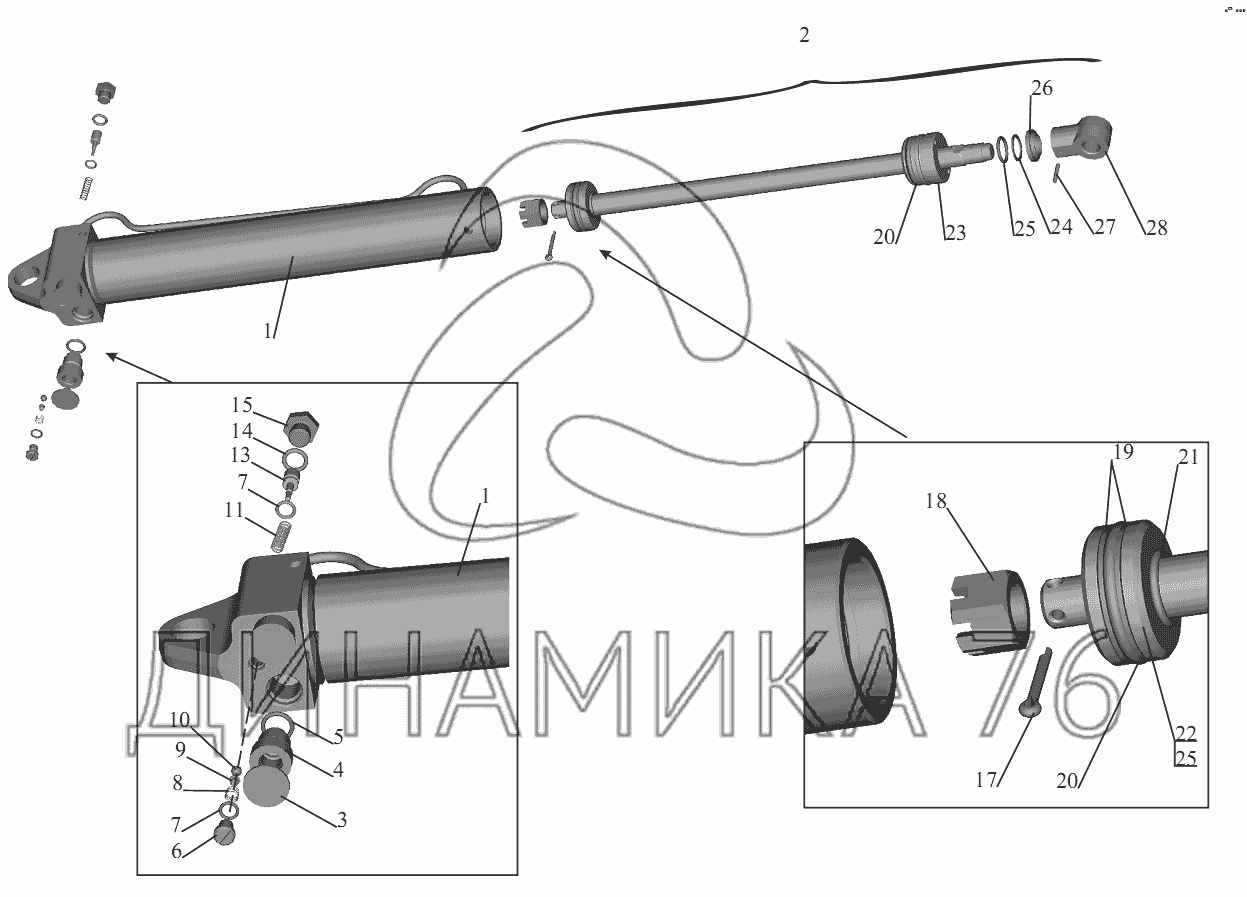 Перечень комплектующих от Гидроцилиндр 64221-5003010 на МАЗ-555102, 5551А2