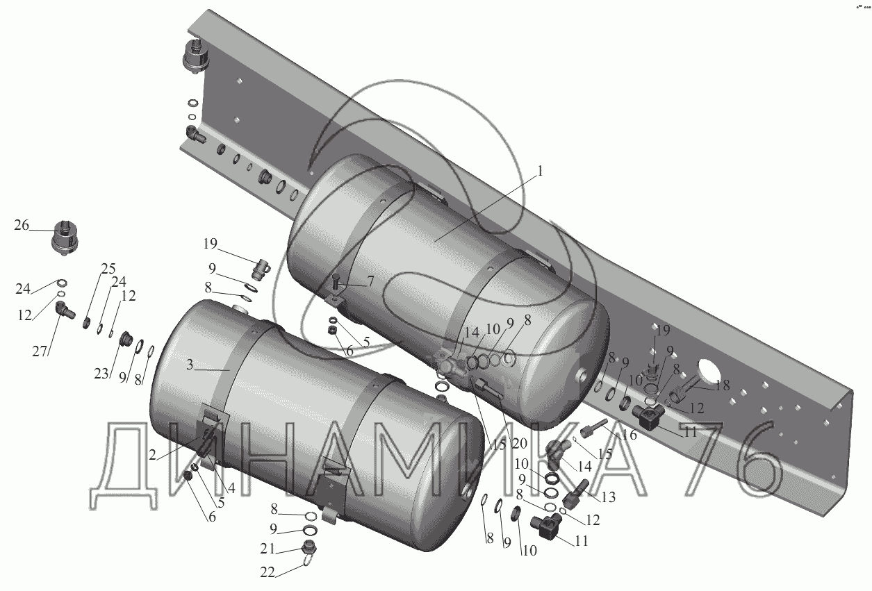 Перечень комплектующих от Установка ресиверов 5551-3513004 на МАЗ-555102, 5551А2