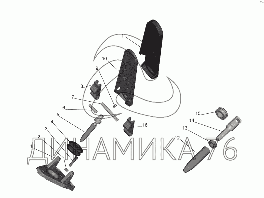 Перечень комплектующих от Педаль привода тормозного крана на МАЗ-555142