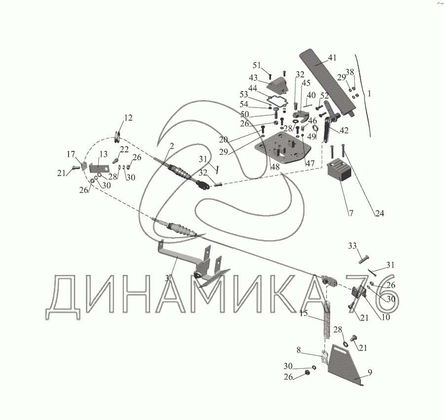 Перечень комплектующих от Привод управления двигателем 533742-1108002 на МАЗ-555142