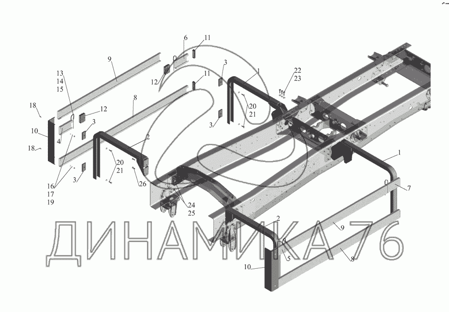 Перечень комплектующих от Установка бокового ограждения 555142-2800040 на МАЗ-555142