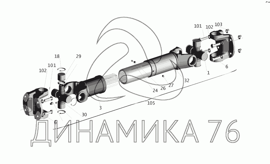 Перечень комплектующих от Установка карданного вала на МАЗ-555142