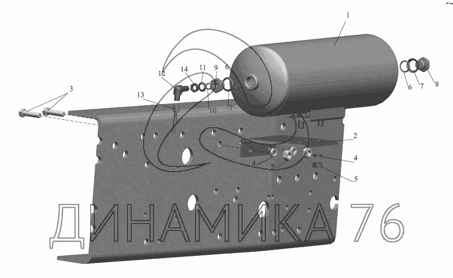 Перечень комплектующих от Установка ресивера и присоединительной арматуры на МАЗ-555142