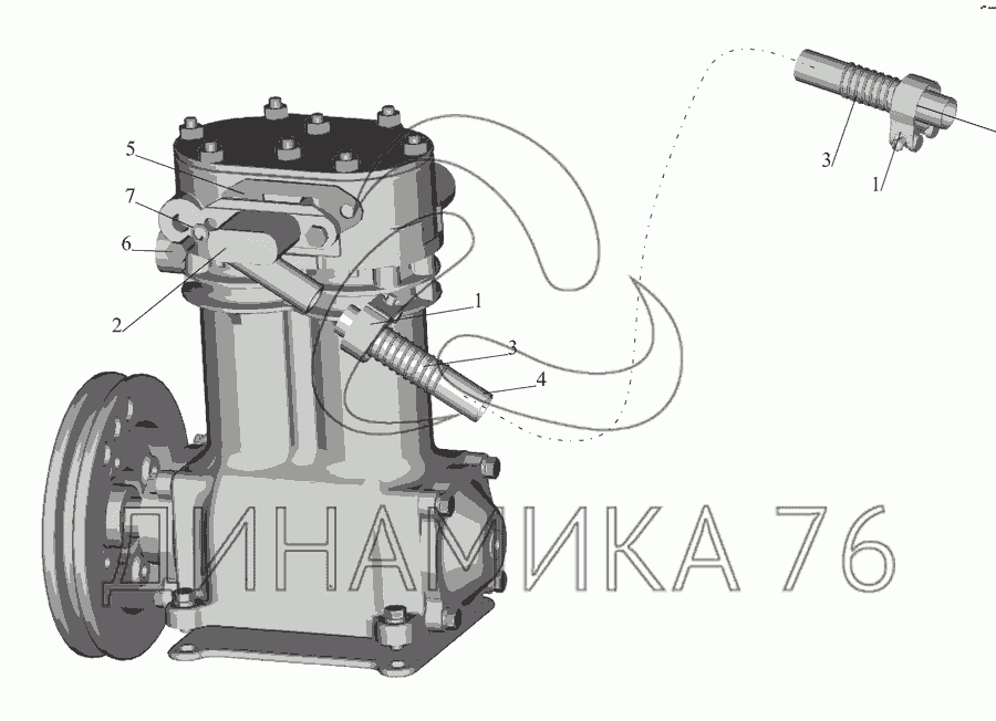 Перечень комплектующих от Установка шланга пневмокомпрессора на МАЗ-555142