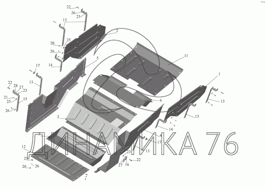 Перечень комплектующих от Установка шумоизоляционных экранов 555142-1061004 на МАЗ-555142