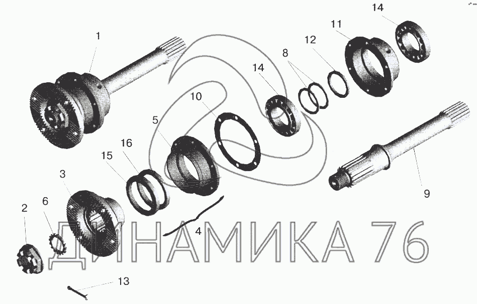 Мост средний. Вал задний — МАЗ-5551 (2003):
