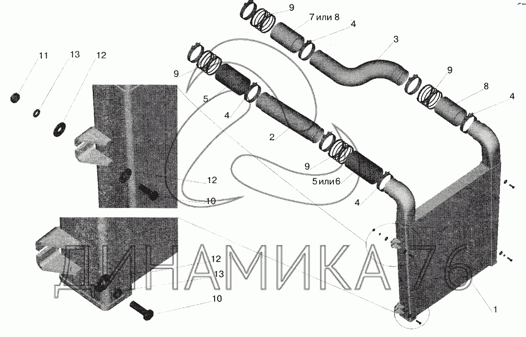 Схемы запчастей предназначены для справочных целей! Мы продаем не все запчасти от Система охлаждения наддувочного воздуха на МАЗ-5551 (2003), представленные в этом списке.