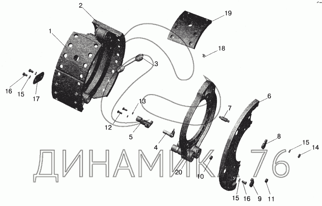 Перечень комплектующих от Тормоз колеса на МАЗ-5551 (2003)
