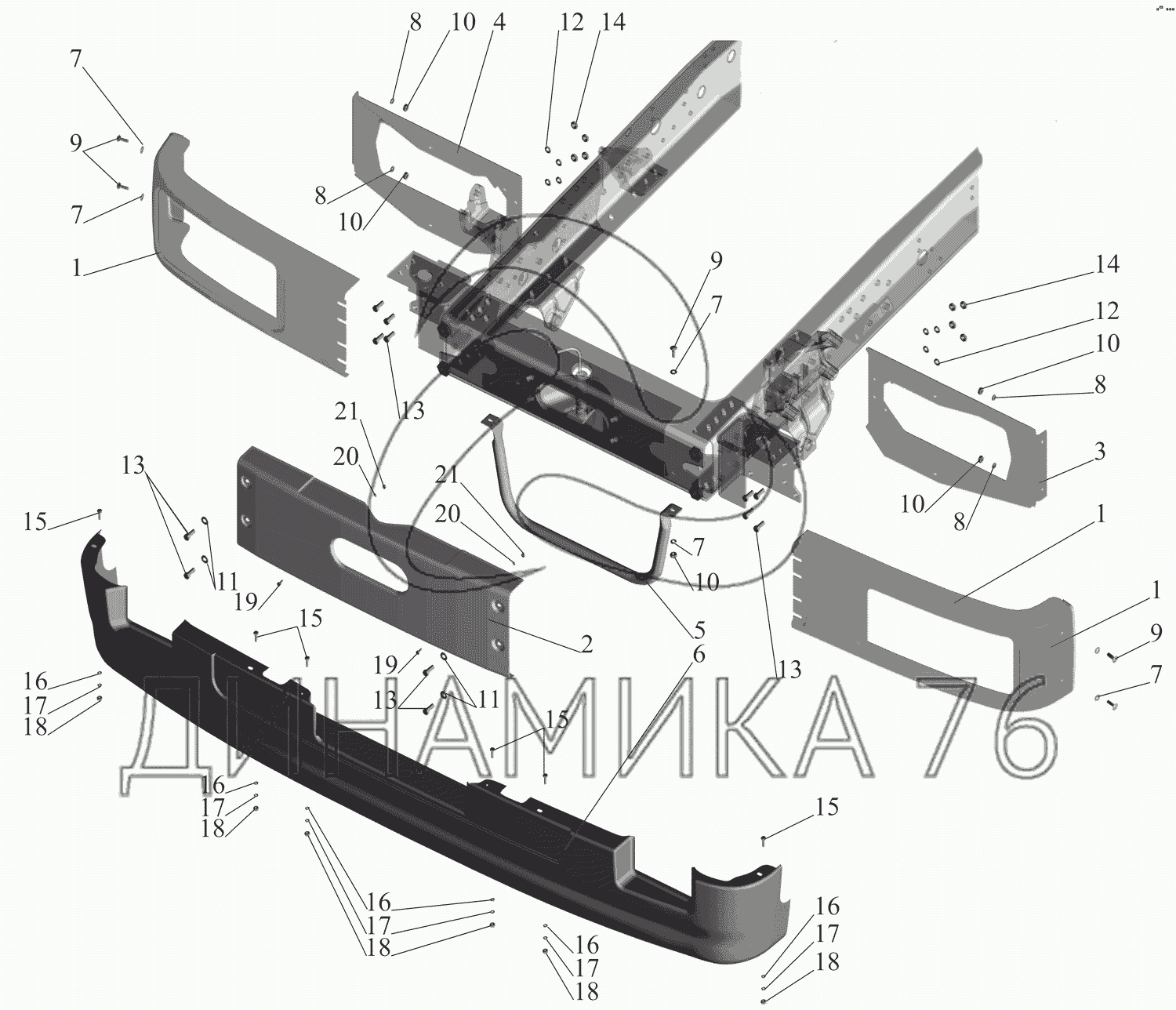 Перечень комплектующих от Крепление бампера на МАЗ-630333