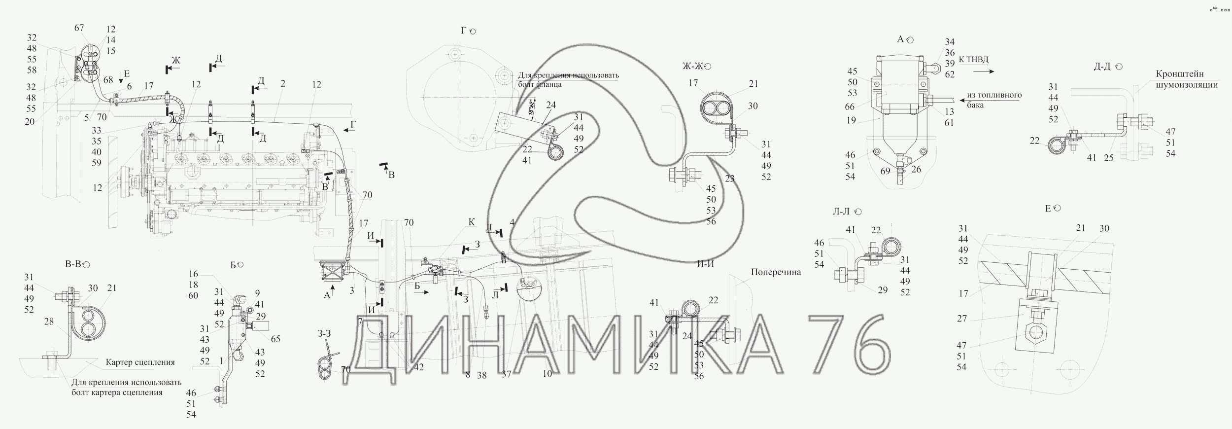 Схемы запчастей предназначены для справочных целей! Мы продаем не все запчасти от Крепление топливопроводов 533632-1104002 на МАЗ-630333, представленные в этом списке.