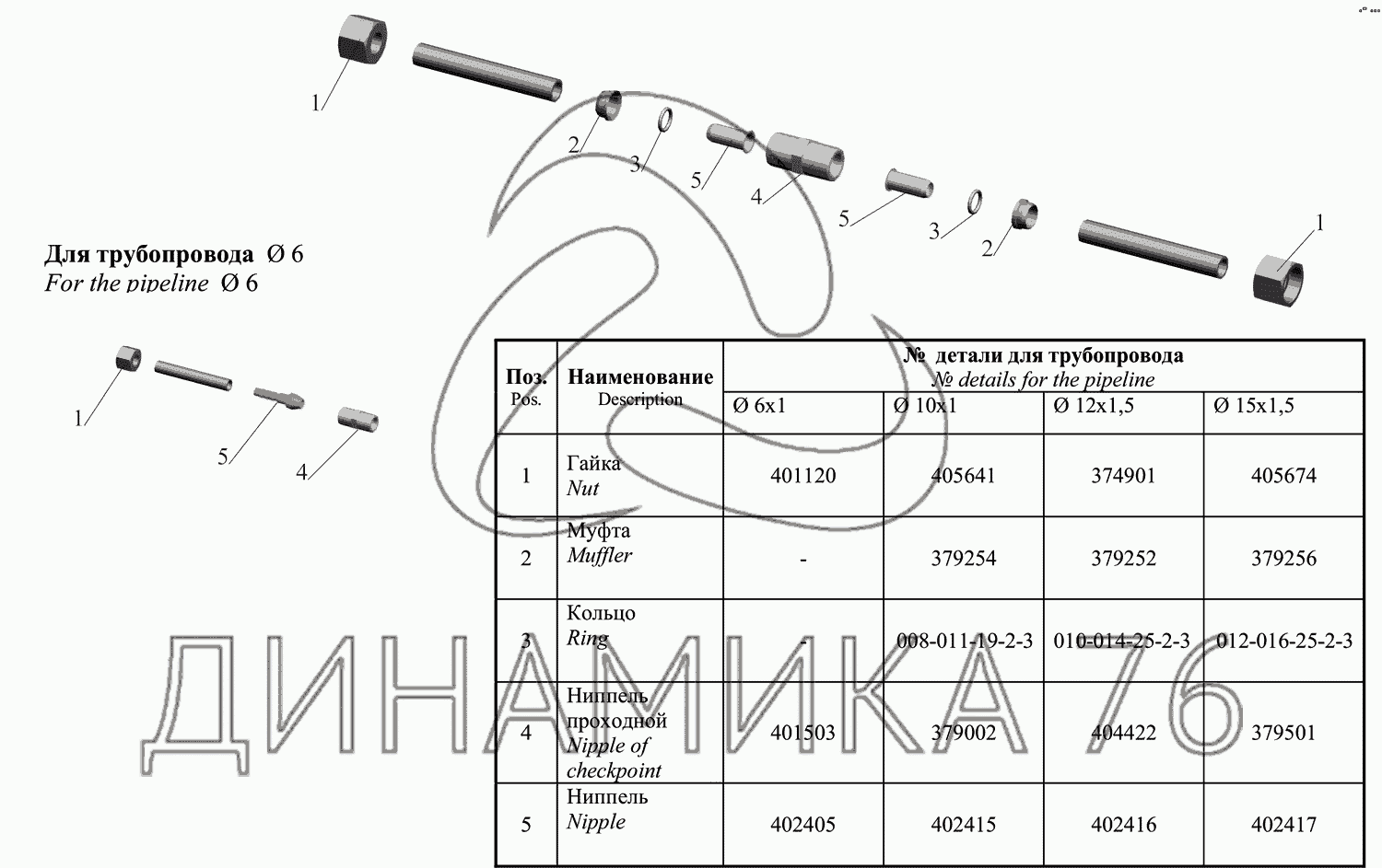 Перечень комплектующих от Соединение для ремонта поврежденных трубопроводов на МАЗ-630333