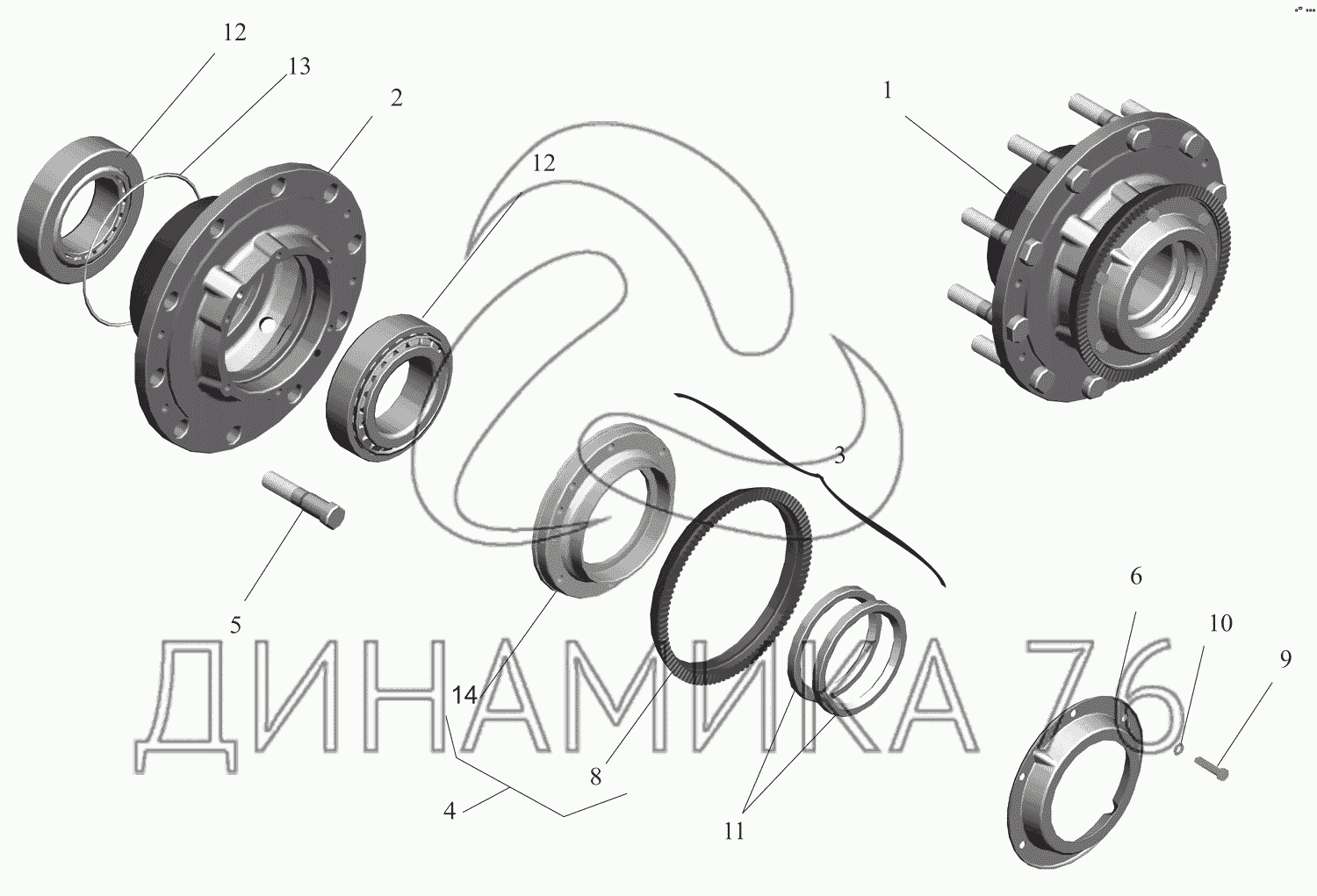 Перечень комплектующих от Ступица заднего моста на МАЗ-630333