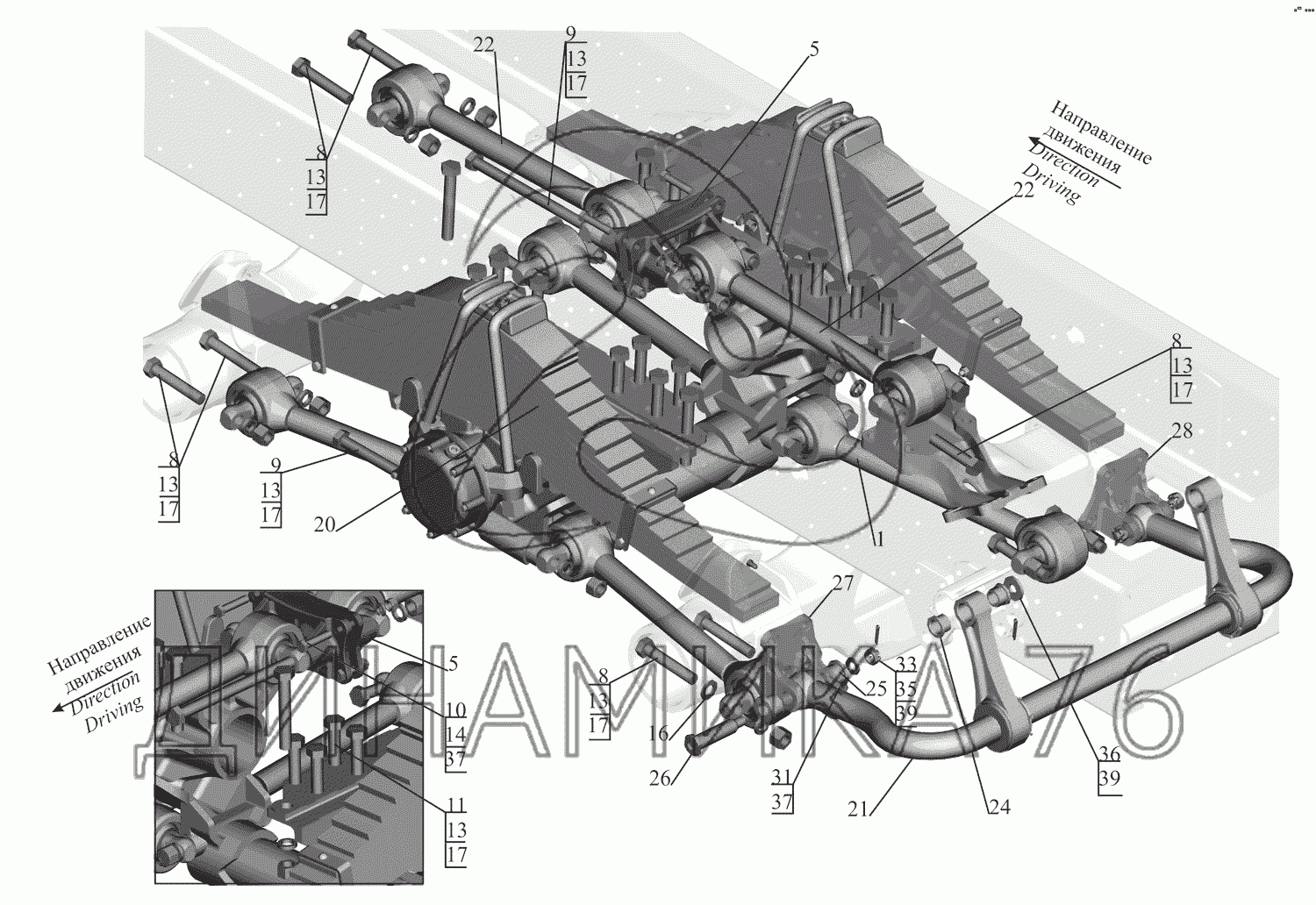Перечень комплектующих от Установка подвески задней 551605-2900002 на МАЗ-630333