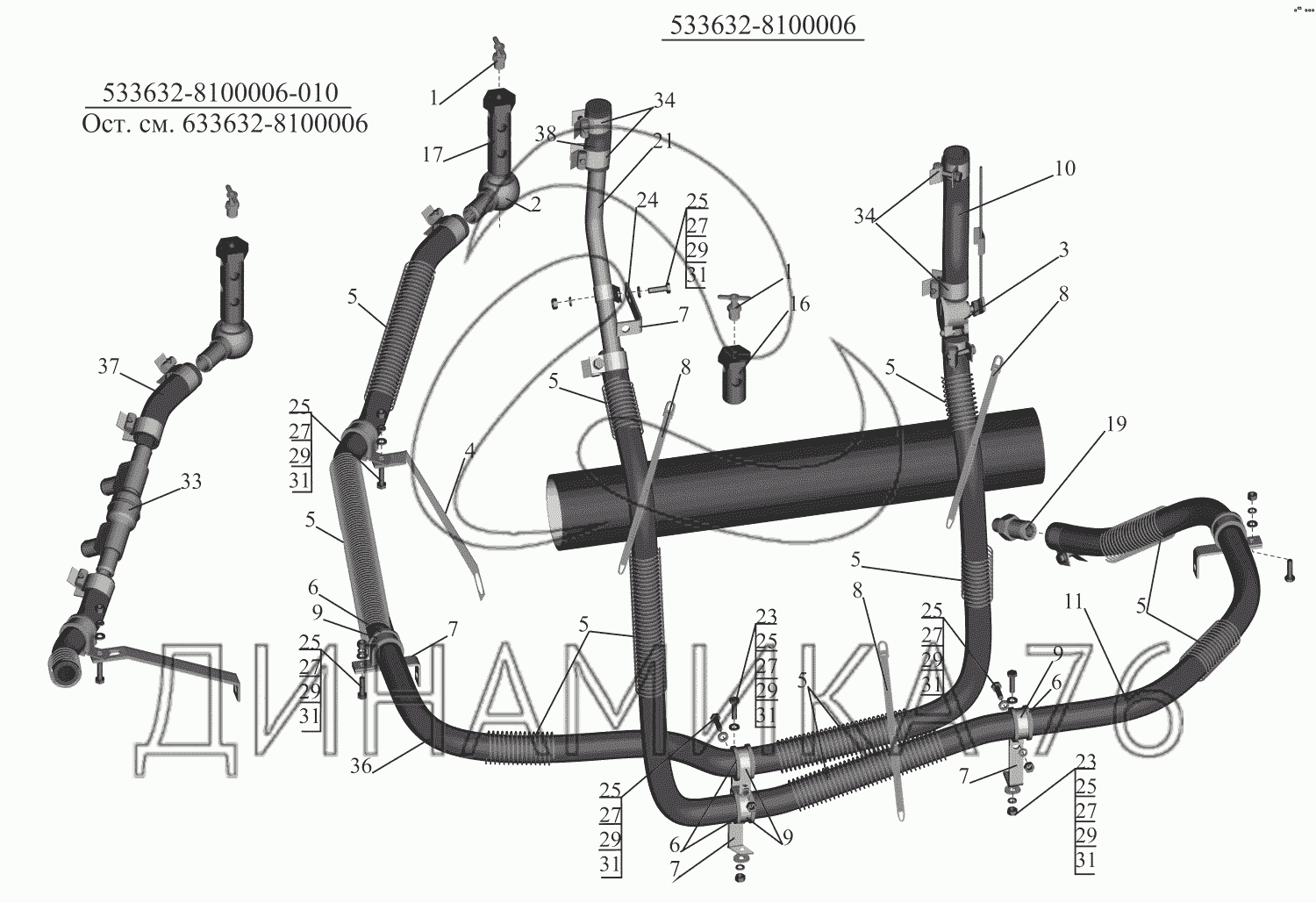 Перечень комплектующих от Установка шлангов отопителя на МАЗ-630333
