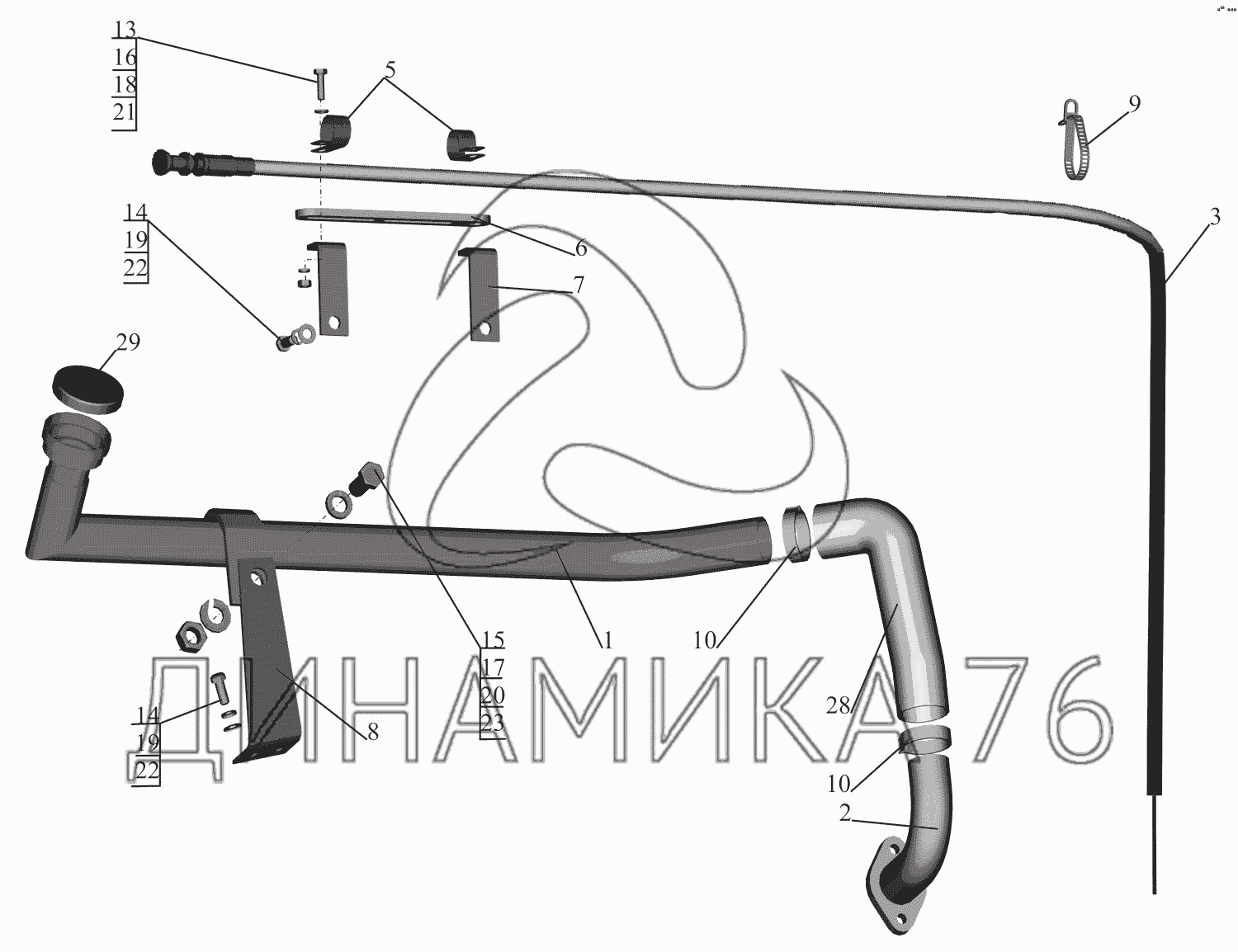 Перечень комплектующих от Установка системы заливки масла на МАЗ-630333