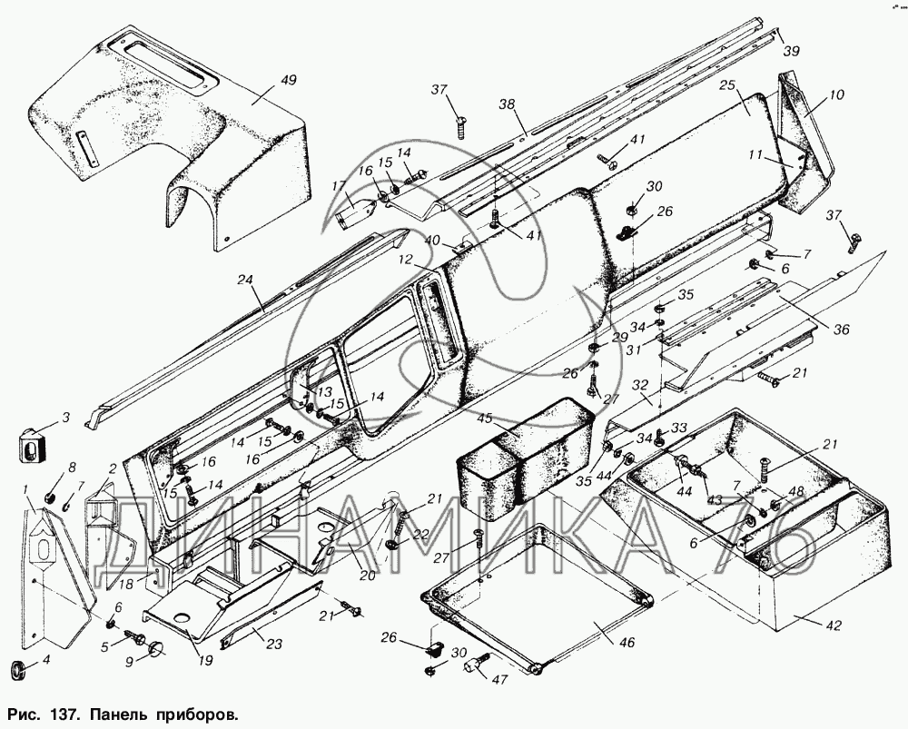 Схемы запчастей предназначены для справочных целей! Мы продаем не все запчасти от Панель приборов на МАЗ-6303, представленные в этом списке.