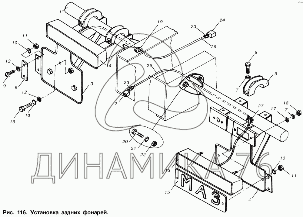 Перечень комплектующих от Установка задних фонарей на МАЗ-6303