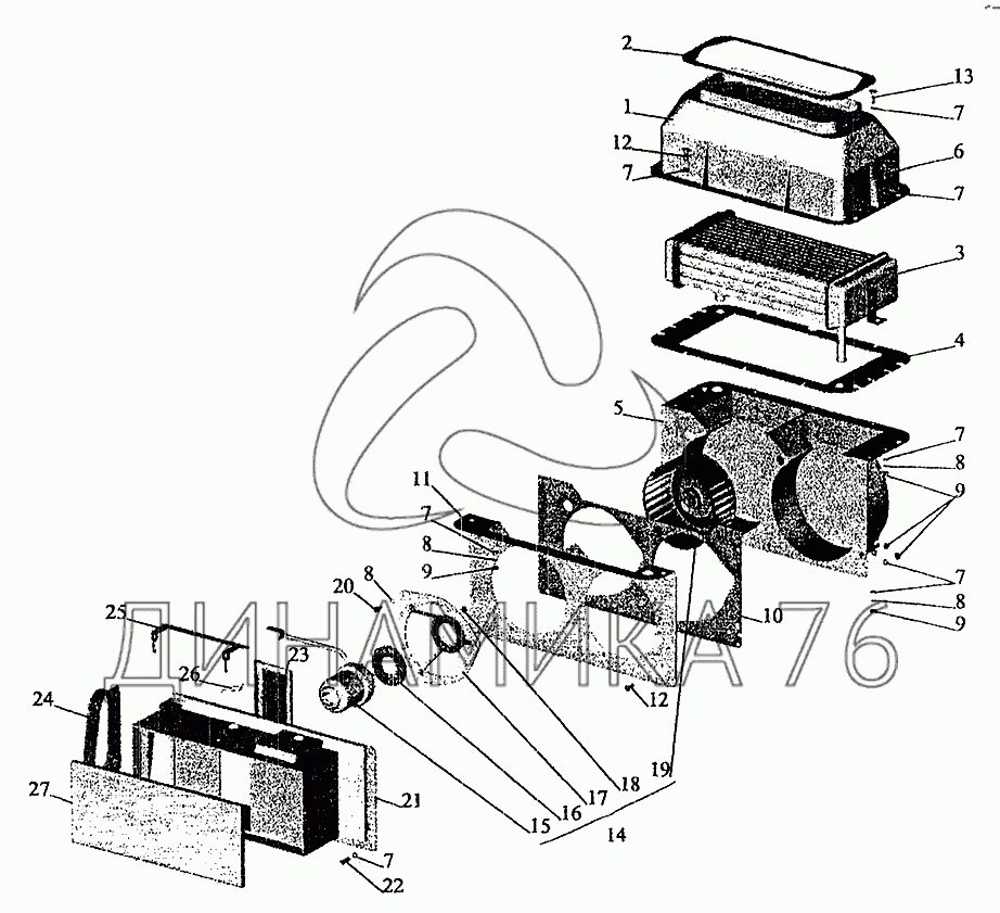 Перечень комплектующих от Отопитель на МАЗ-6303 (2005)