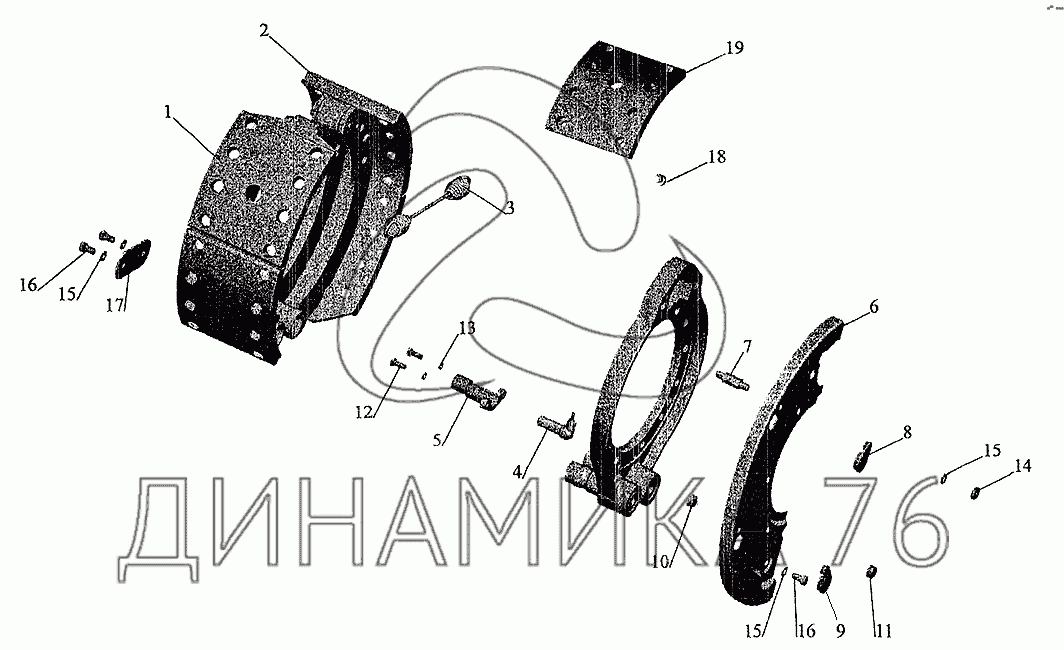 Перечень комплектующих от Тормоз колеса на МАЗ-6303 (2005)