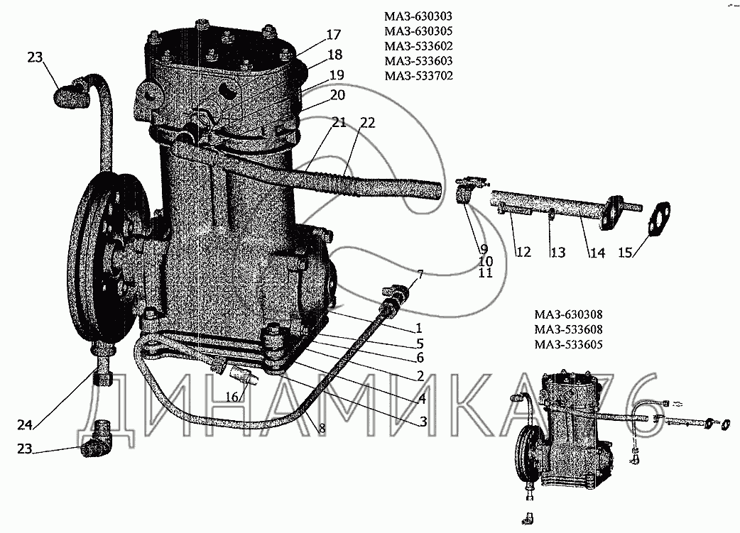 Перечень комплектующих от Установка пневмокомпрессора на МАЗ-6303 (2005)