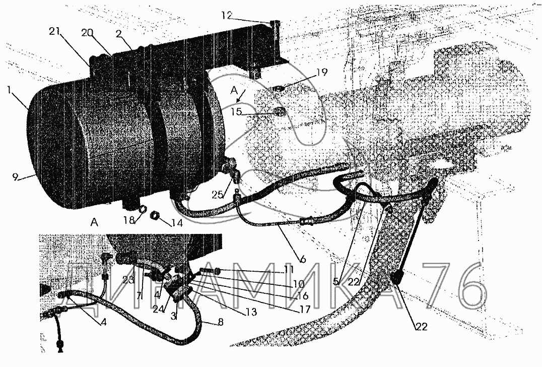 Установка топливопроводов подогревателя — МАЗ-6303 (2005):