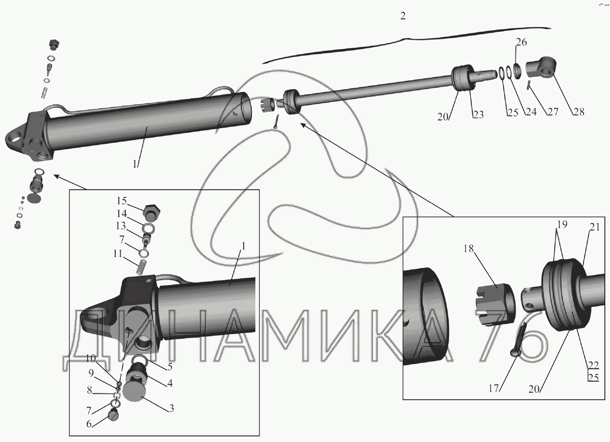 Перечень комплектующих от Гидроцилиндр 64221-5003010 на МАЗ-6303A3, 6303A5