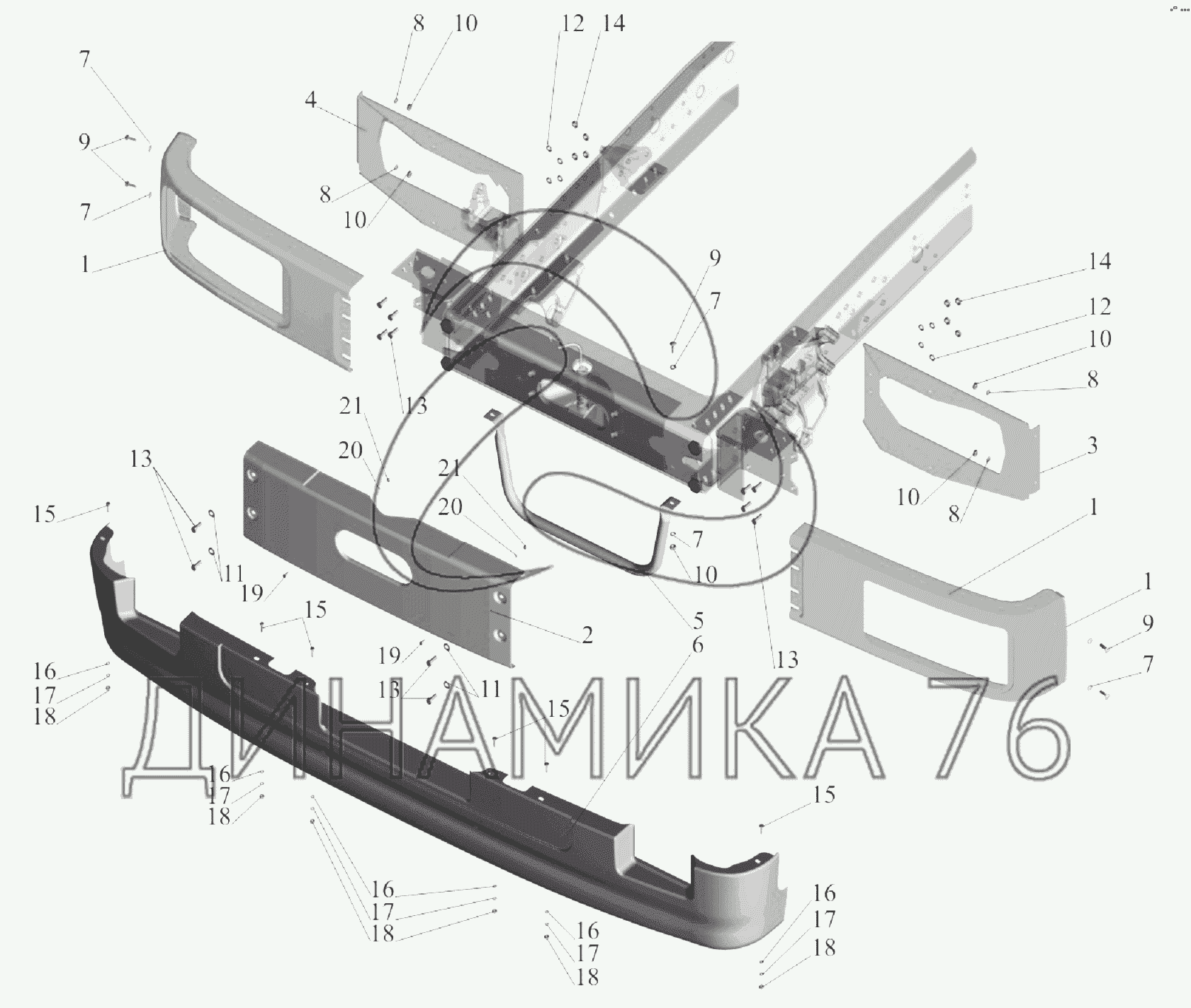 Перечень комплектующих от Крепление бампера на МАЗ-6303A3, 6303A5