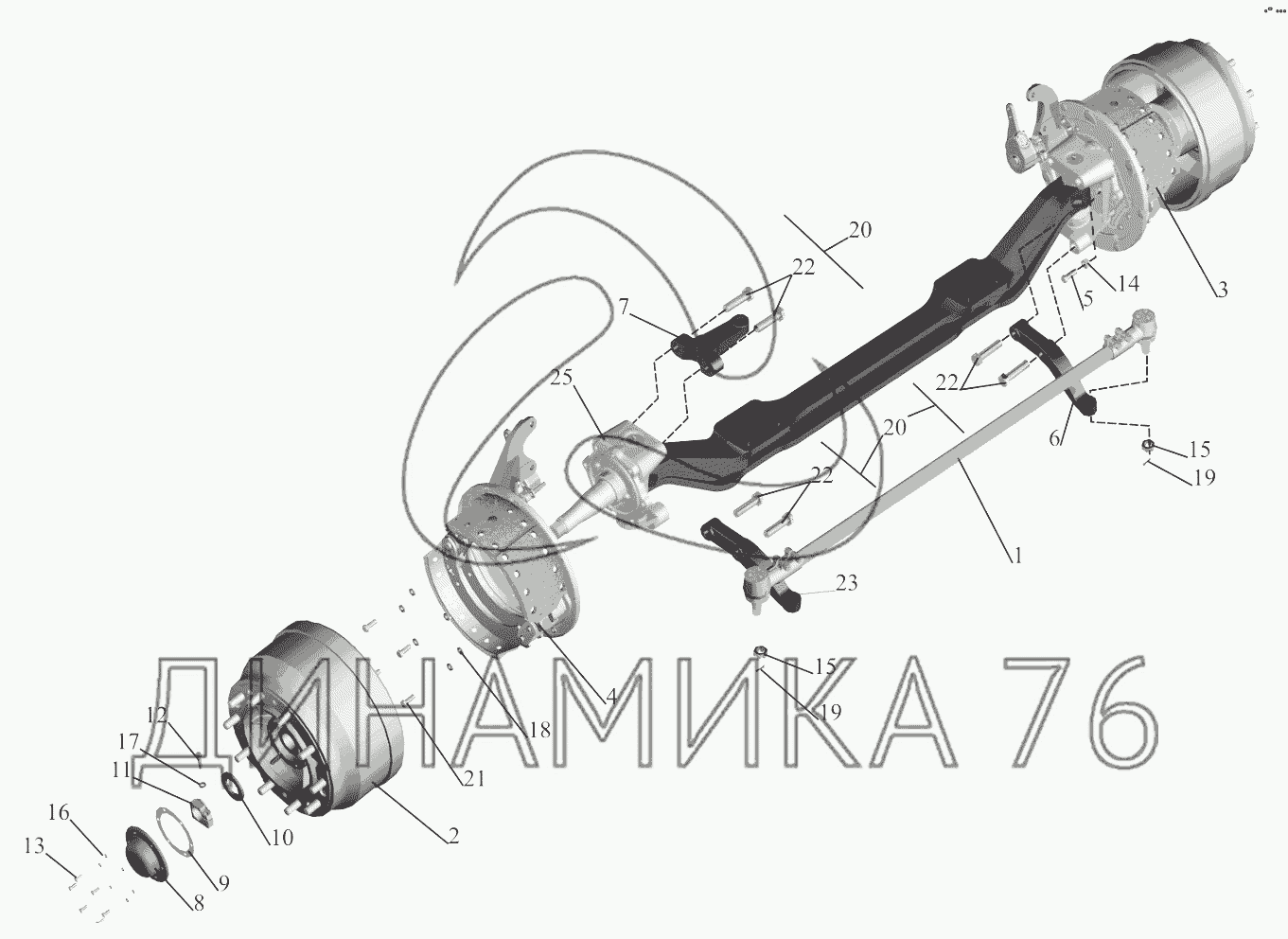 Перечень комплектующих от Передняя ось 551603-3000015 на МАЗ-6303A3, 6303A5