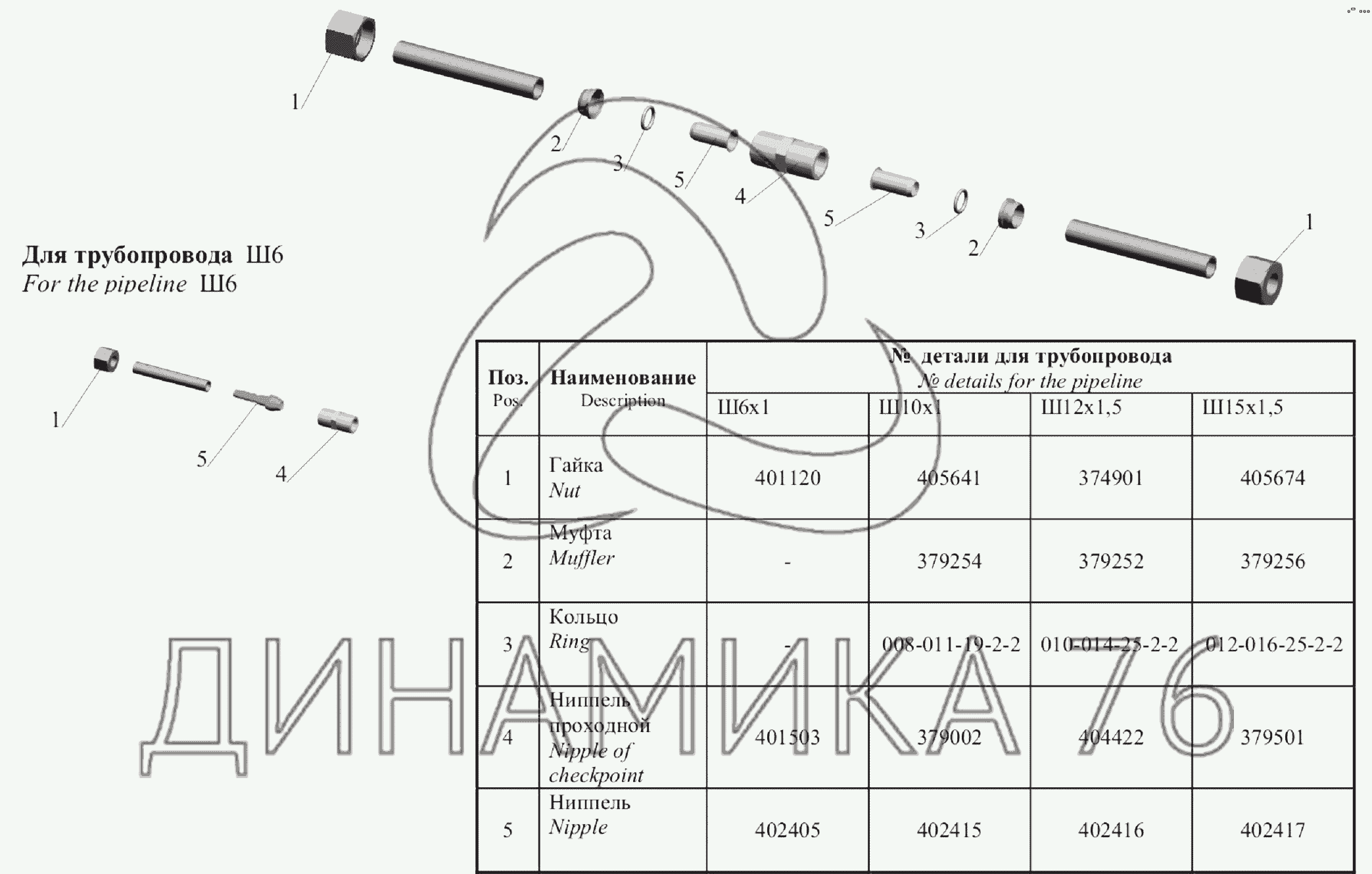 Перечень комплектующих от Шланги на МАЗ-6303A3, 6303A5