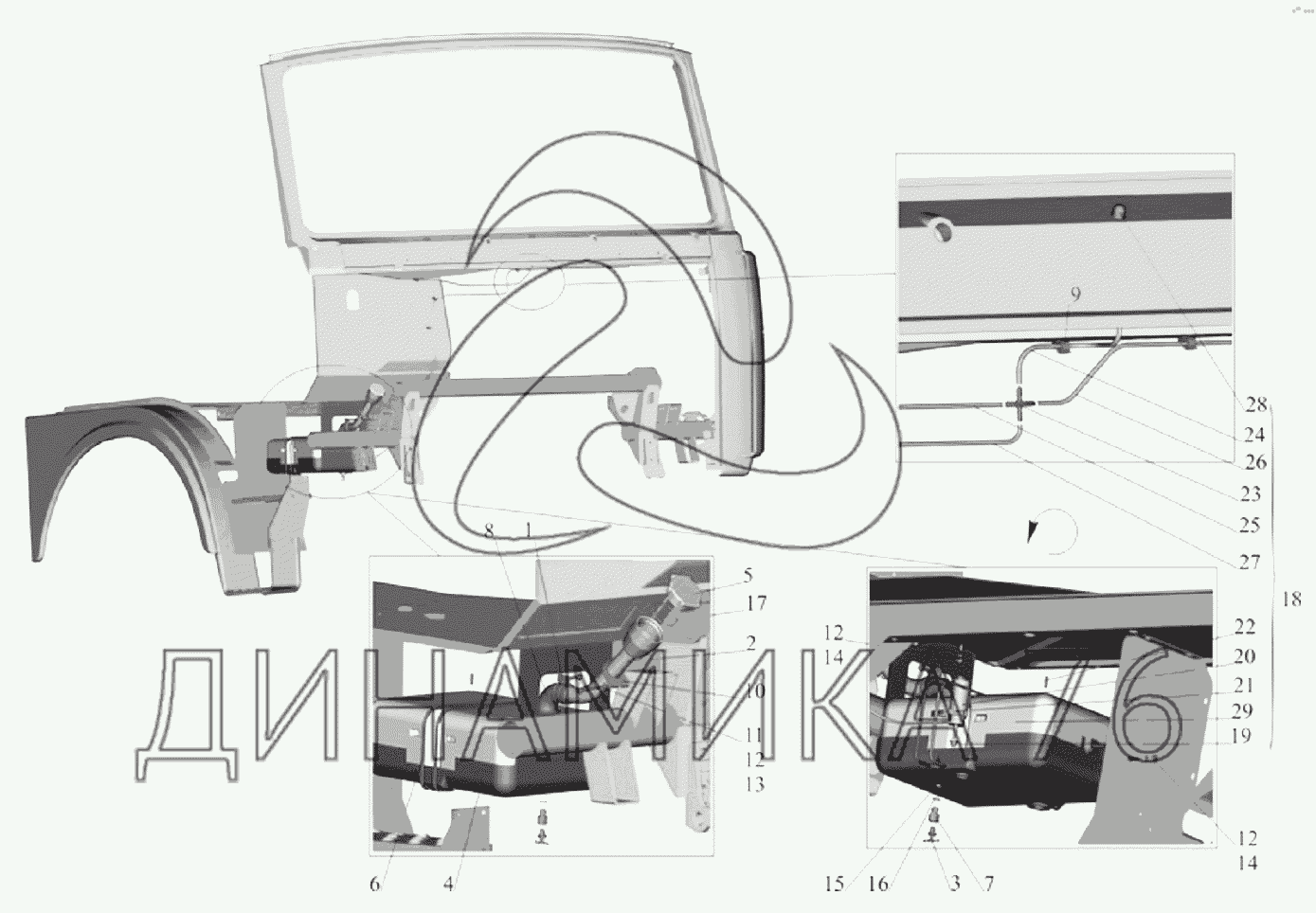 Перечень комплектующих от Установка омывателя на МАЗ-6303A3, 6303A5