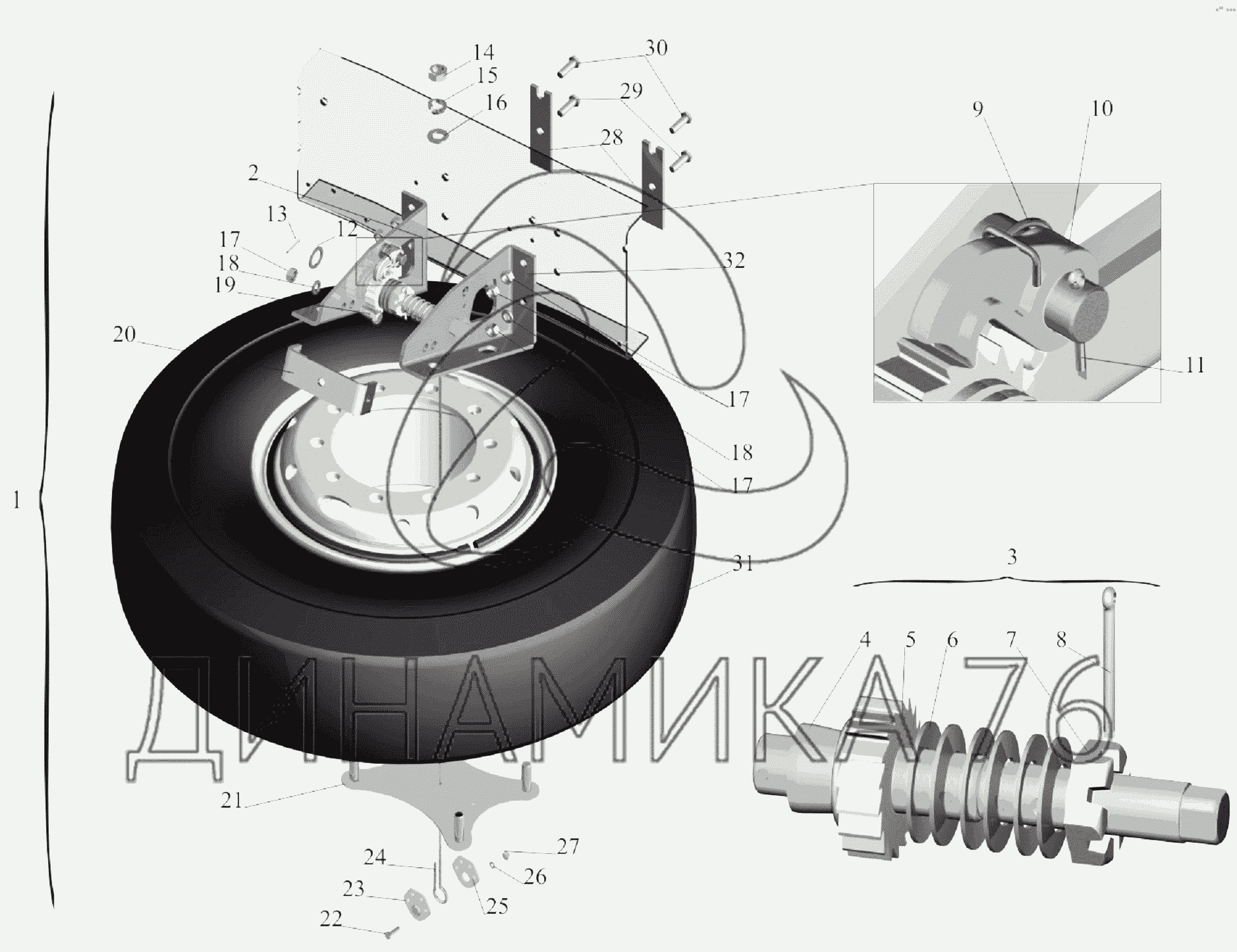 Установка запасного колеса на МАЗ-6303A3, 6303A5 (до 2007 г.)