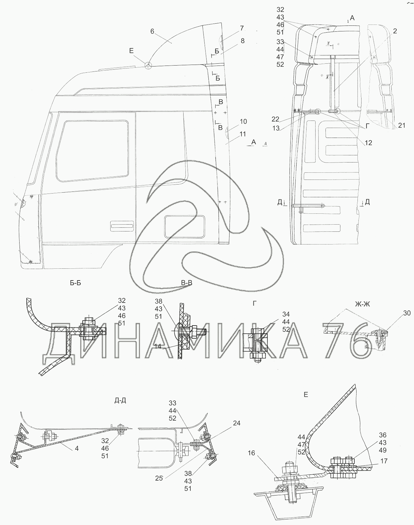 Схемы запчастей предназначены для справочных целей! Мы продаем не все запчасти от Установка обтекателей 6312-8000014 на МАЗ-631019, представленные в этом списке.