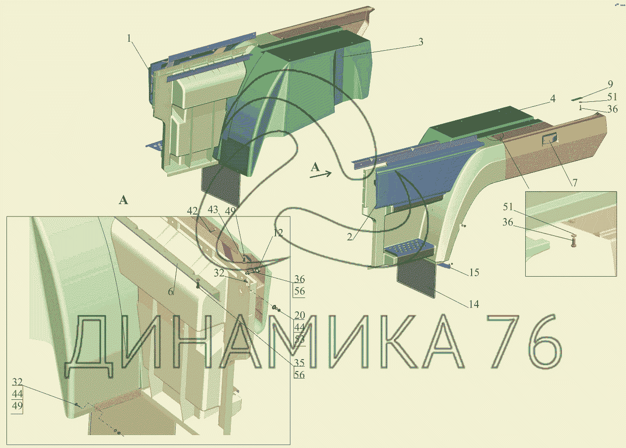 Установка оперения 6431-8400020-010 на МАЗ-631019 (до 2014 г.)