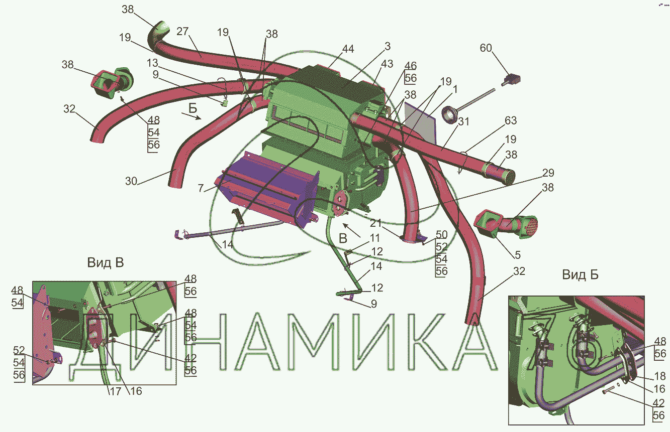 Схемы запчастей предназначены для справочных целей! Мы продаем не все запчасти от Установка отопителя 631019-8100001-010 на МАЗ-631019, представленные в этом списке.