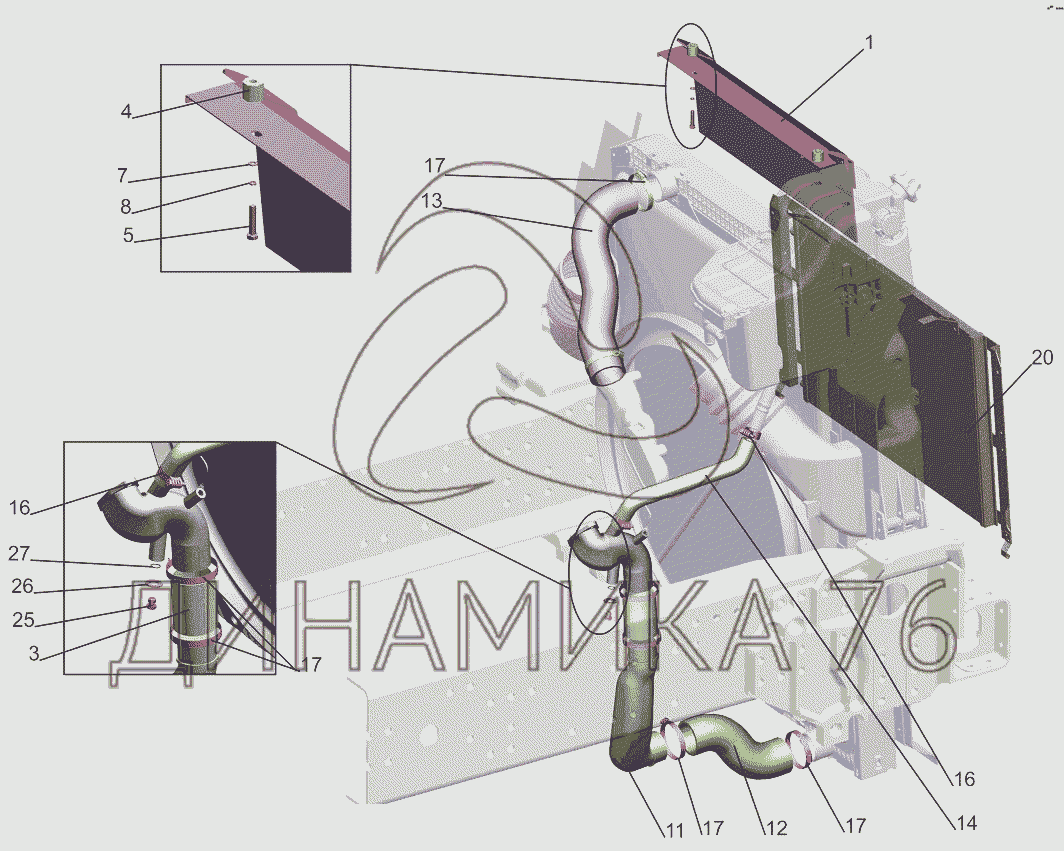 Установка системы охлаждения 544019-1300005 — МАЗ-631019: