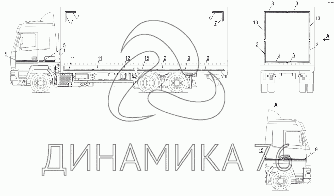Перечень комплектующих от Установка светоотражающей маркировки 631019-8200002 на МАЗ-631019