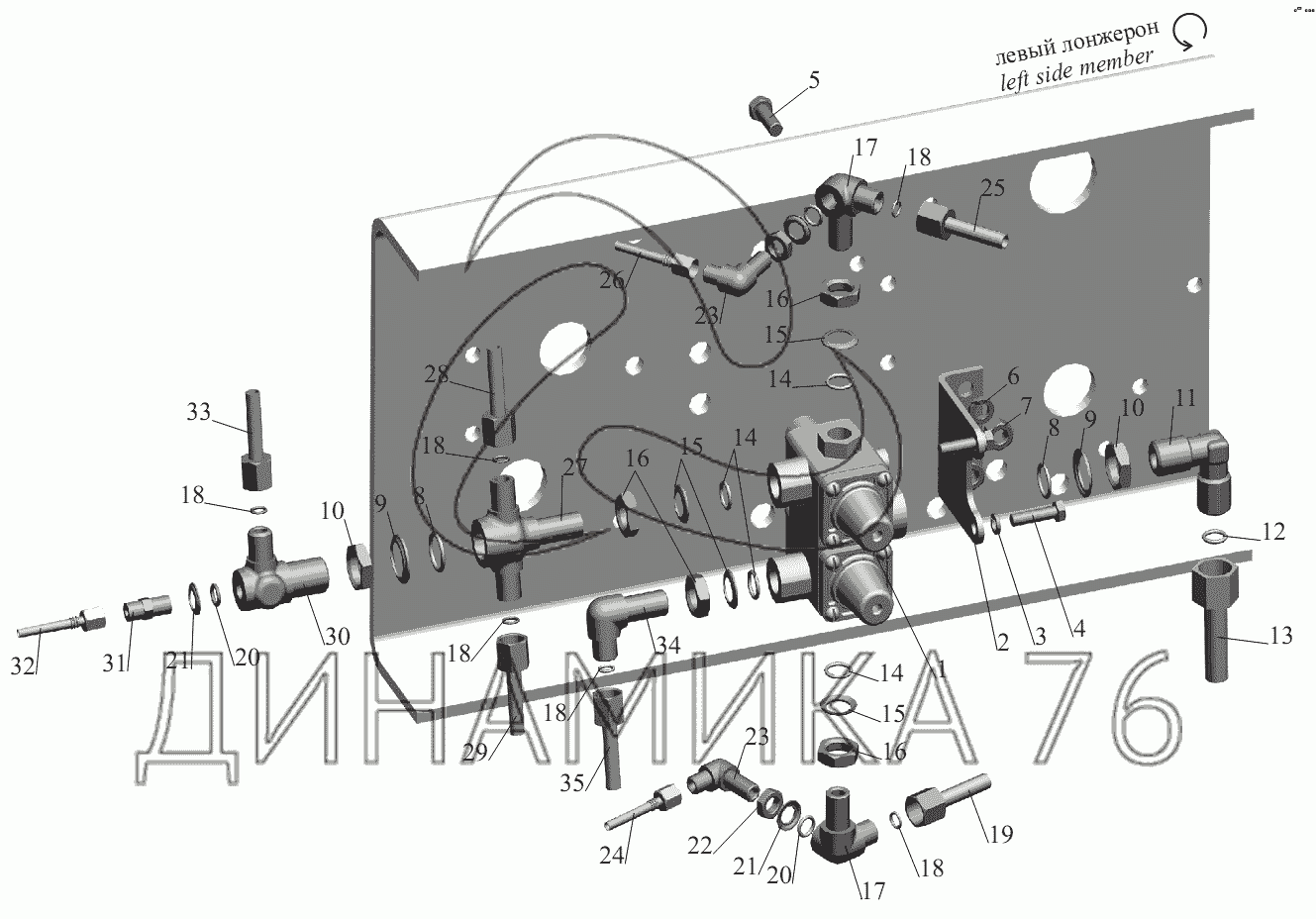 Перечень комплектующих от Крепление четырехконтурного клапана на МАЗ-631236