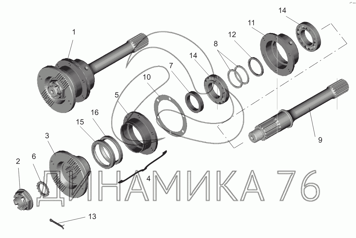 Мост средний. Вал задний на МАЗ-631236 (до 2007 г.)