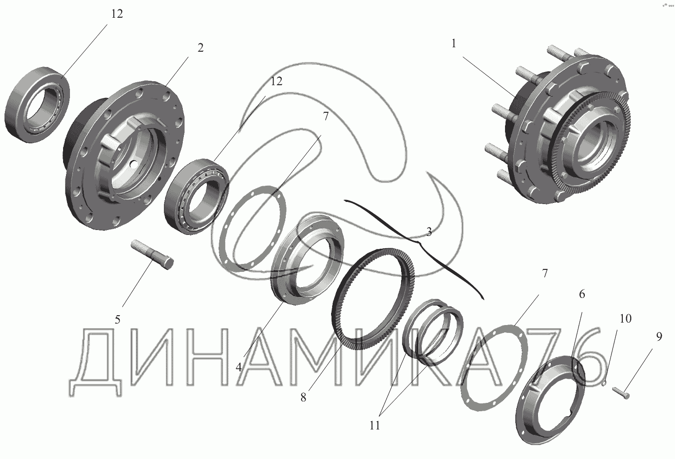 Перечень комплектующих от Ступица заднего моста на МАЗ-631236