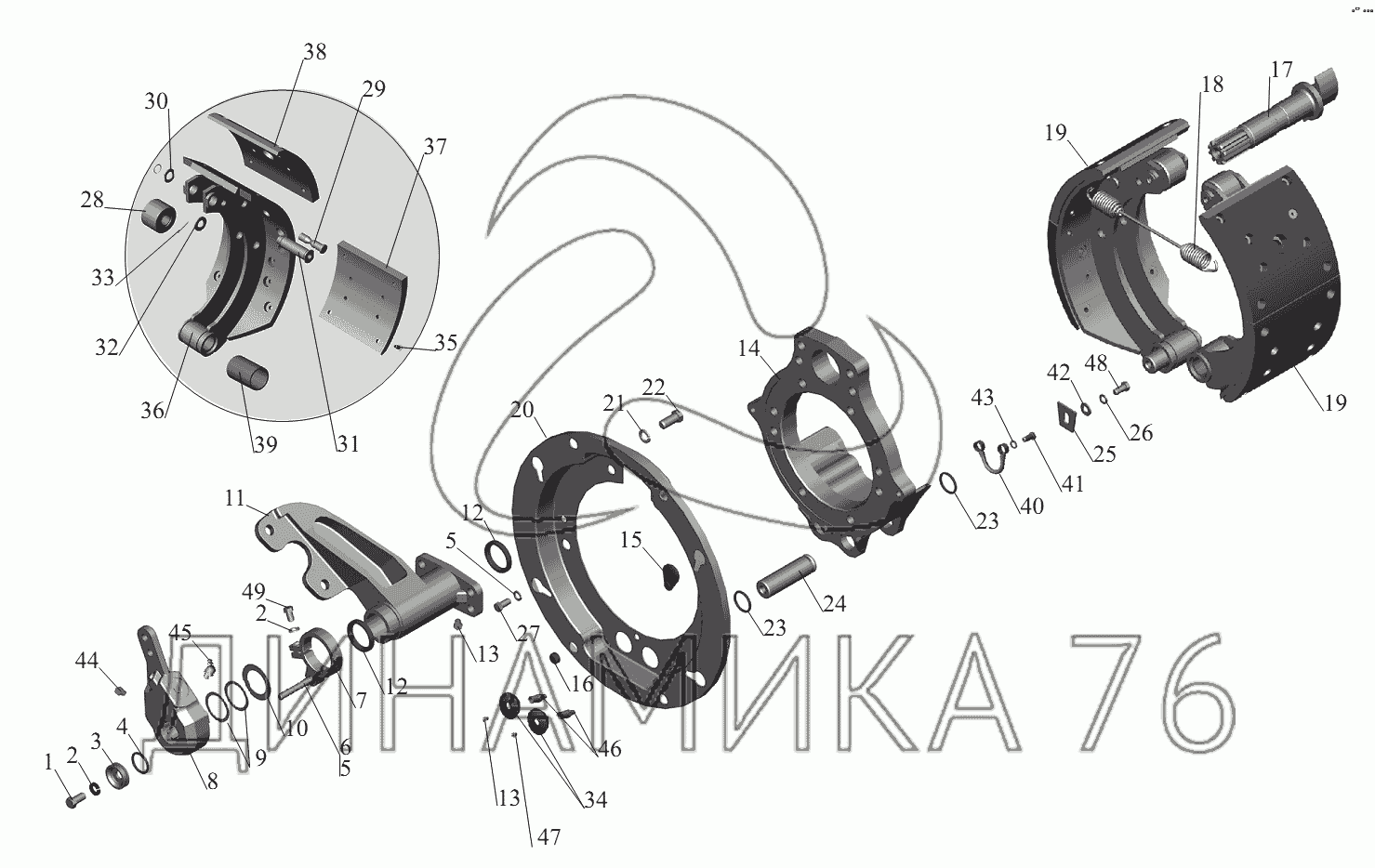 Перечень комплектующих от Тормозной механизм передних колес на МАЗ-631236