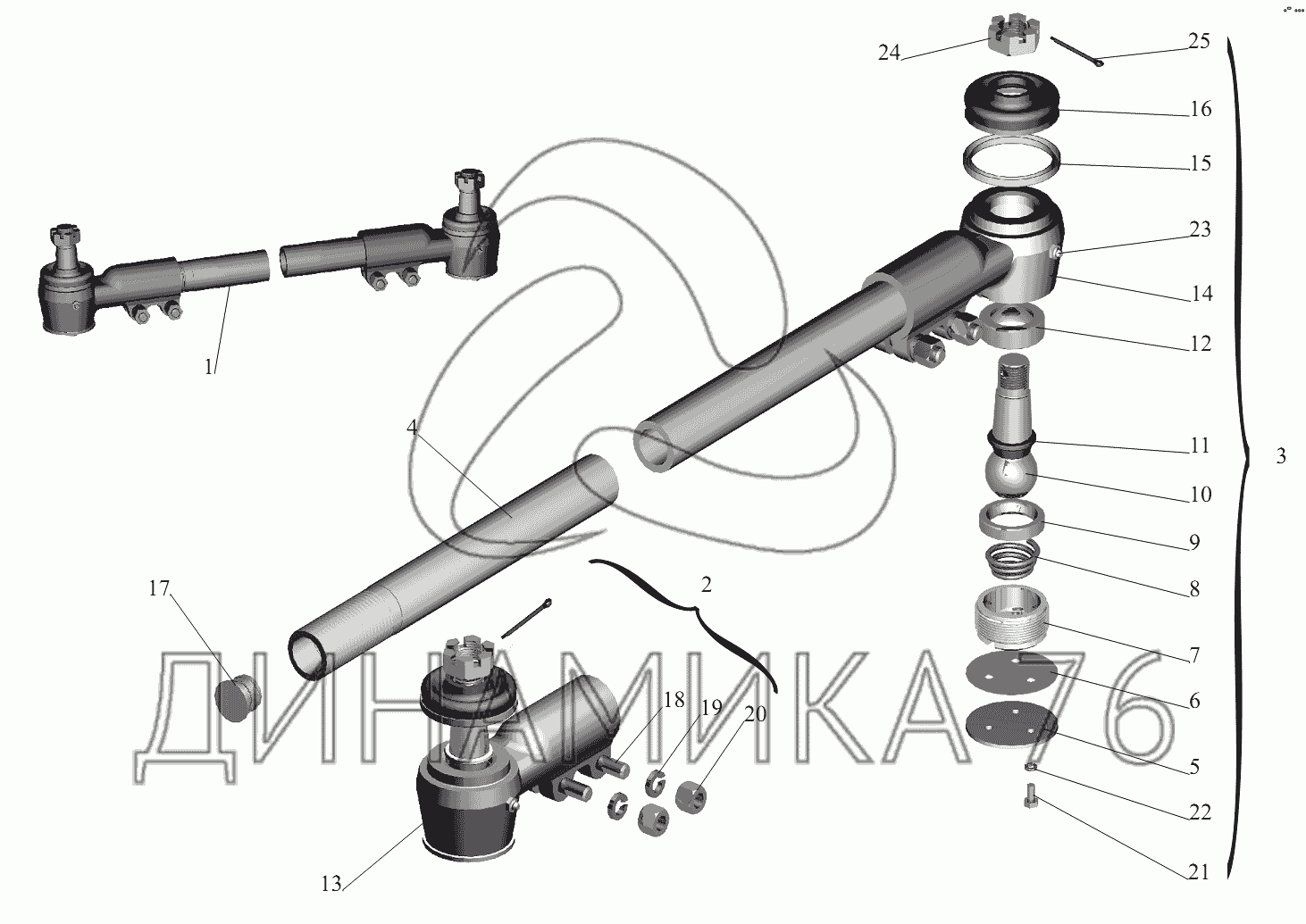 Перечень комплектующих от Тяга поперечная рулевая 64221-3003052 на МАЗ-631236